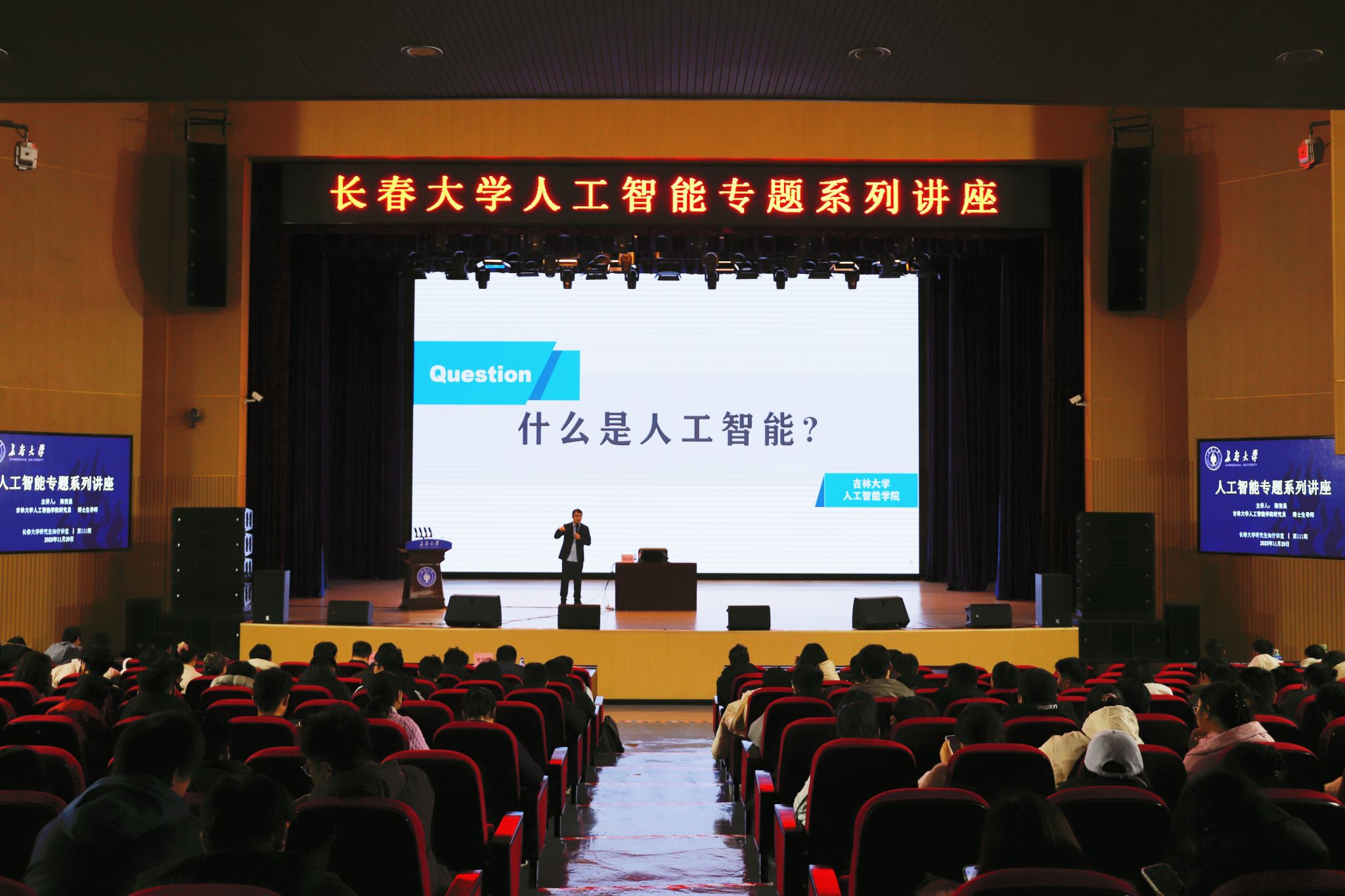 11月29日上午,学校在团风报告厅举办人工智能专题系列讲座,特邀吉林大学人工智能学院研究员、博士生导师陈贺昌作题为“量变到质变:智能时代的前沿技术与发展趋势”专题报告。